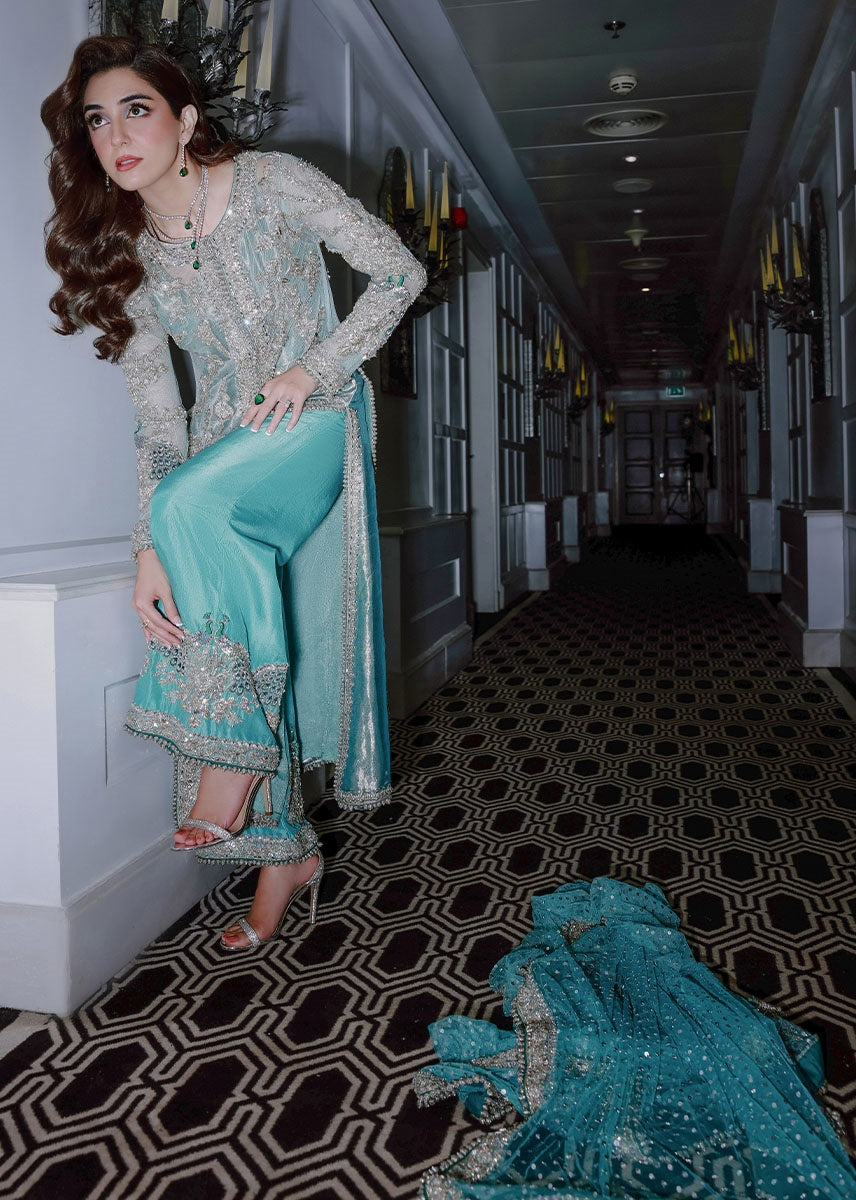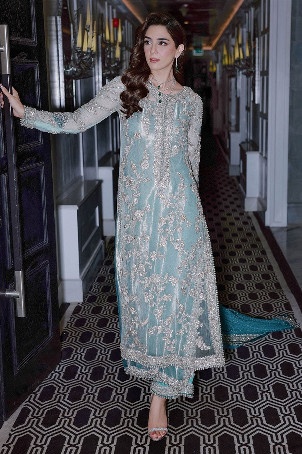 Elevate your style with Sara Rohale Asghar's Premium Net Embroidered Unstitched 3 Piece Ferozeah. The intricate embroidery on high-quality net fabric exudes elegance and sophistication. Customize your look with this versatile piece, perfect for any occasion. Be ready to turn heads and make a statement.