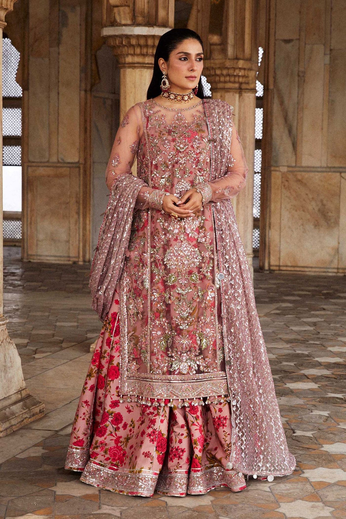 Net shirt composed with intricate emboroidery all over enhanced with printed korean raw-silk lining. Paired with the Korean Raw-silk Digital printed Lehnga. And the net embroidered sequins dupatta adds a touch of glamour to the overall look. Overall this attire is a unique and stylish addition to the warddrobes.